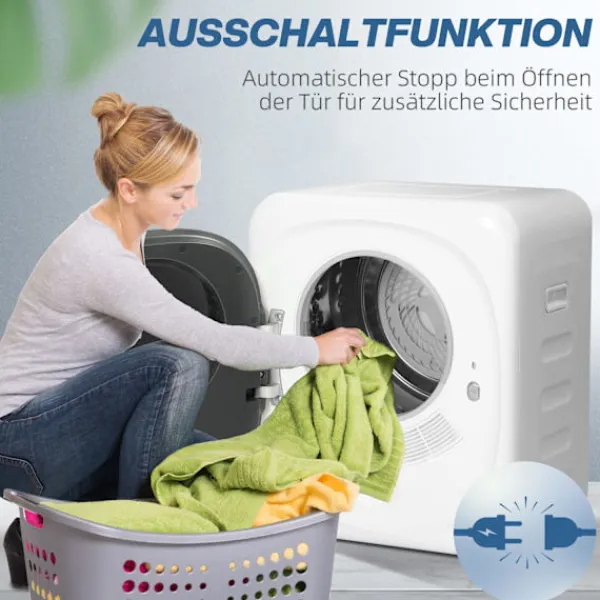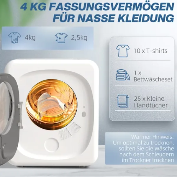 Den kompakta torktumlaren på 4 kg garanterar fräsch, bakteriefri tvätt med sin platsbesparande design och 60°C torkprogram. Idealisk för små utrymmen och erbjuder optimal vård med intelligenta sensorer.
