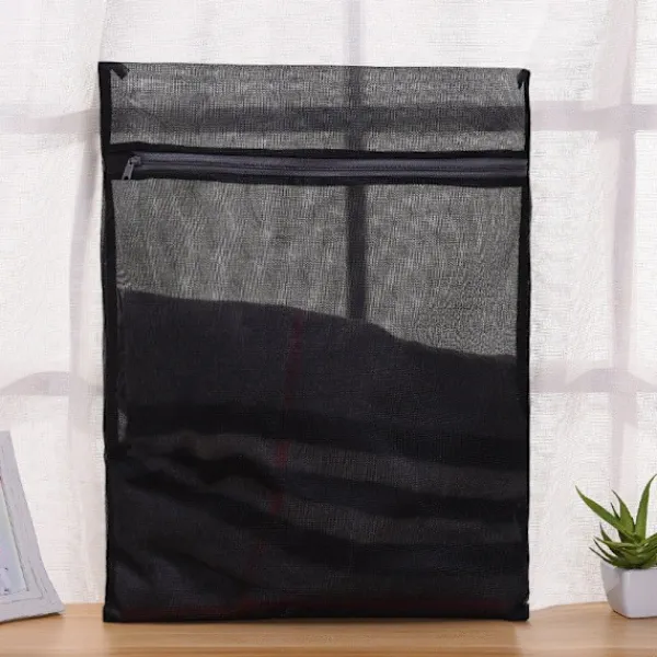 Tvättpåse av meshnät med dragkedja. Den här tvättpåsen är ca. 50 x 60 cm vilket ger dig plats för att tvätta flera plagg samtidigt i påsen. Den är ett viktigt tvättmaskinstillbehör hemma eller på resan, när du behöver tvätta ömtåliga plagg som kräver lite noggrannare klädvård. Tvättpåsen är även bra när du tvättar kläder med metalldetaljer, så de inte skadar tvättmaskinen.