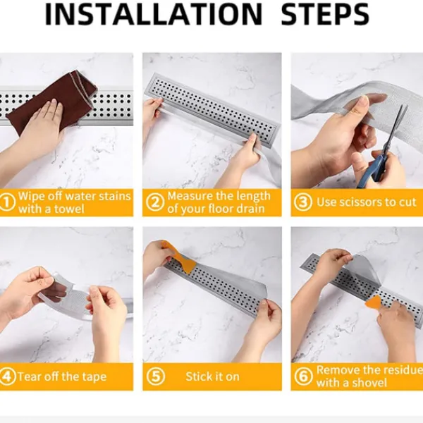 Lätt att Använda Duschgolvbrunnskontakten är gjord av högkvalitativ dubbelsidig tejp, som har god vidhäftning, god vattenbeständighet och inte är lätt att falla av. Den kan användas i flera veckor utan att lämna några märken eller skador när den rivs av.