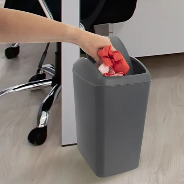 Soptunna med en kapacitet på 10 liter. Tillverkad av hållbart material i en mörkgrå färg. Utrustad med ett praktiskt, tippbart lock som gör det enklare att slänga avfall.