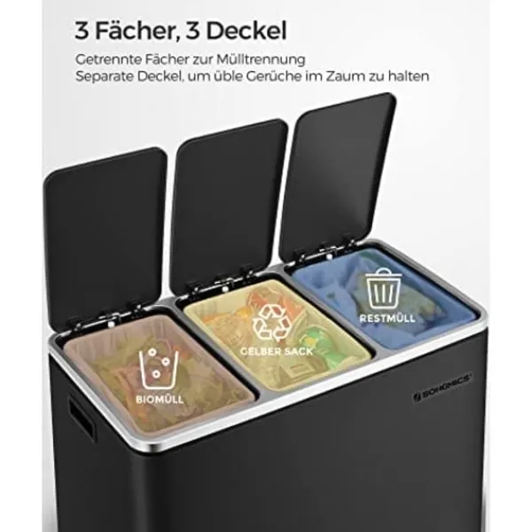 En välsignelse för ditt kök: som belyser behaglig estetik och bekväm funktion, och denna eleganta pedalfack har 3 fack för att göra att du separerar din återvinning ett ögonblick; Och allt kan göras utan att ens röra vid papperskorgen!
