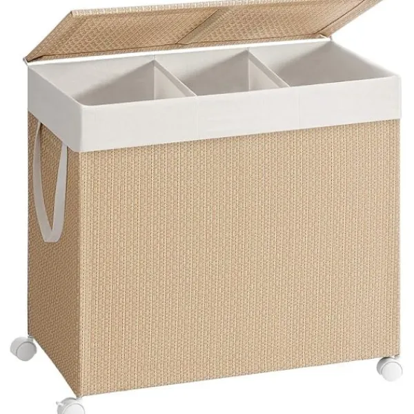 【GENERÖS FÖRVARING FÖR ORGANISERAD TVÄTT】Med en kapacitet på 165 liter ger denna tvättkorg gott om utrymme för en familjs tvättbehov. De 3 facken gör att du effektivt kan sortera tvätten efter färg eller typ.