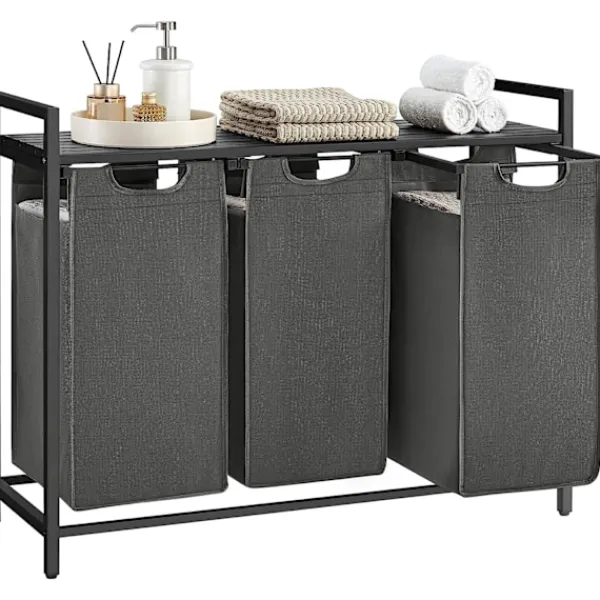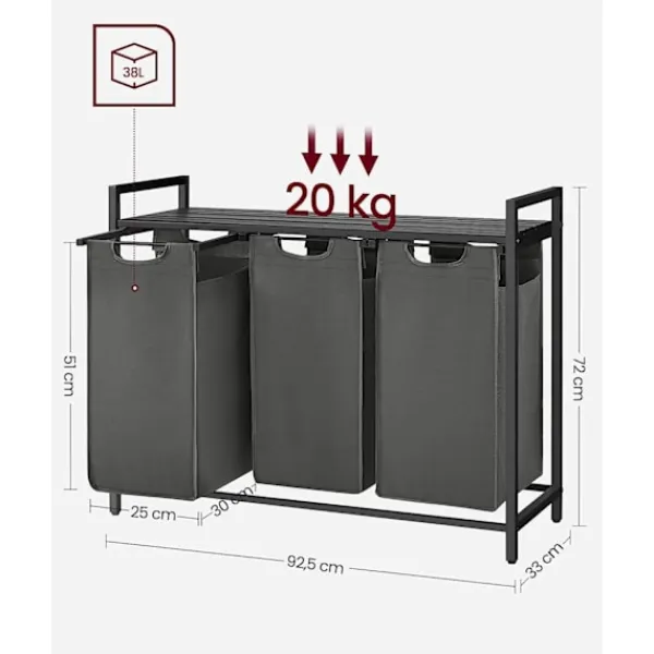 Med en total kapacitet på 114L är denna tvättkorg perfekt för att separera kläder efter färg eller material. De tre rymliga facken (38L per fack) underlättar hanteringen av tvätten.