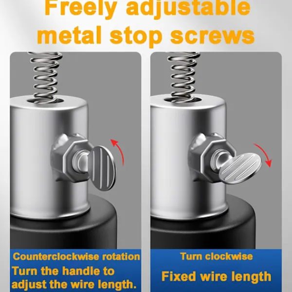 【Bekväm förvaring och underhåll】Stålkabeln på avloppsrensaren kan enkelt lindas in i trumman, vilket sparar utrymme och håller den snygg. Den förbättrade metallöppningen minskar slitage och kan enkelt fixa eller lossa kabeln genom att justera stoppskruven