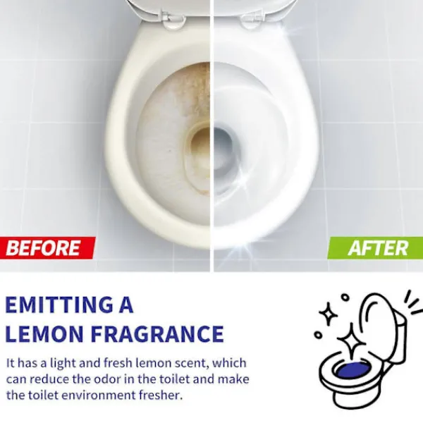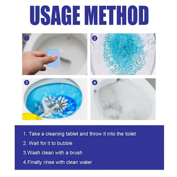 Vår tet rengörare innehåller bakpulver, citronextrakt, ammoniumperkarbonat. Den kan ta bort envisa fläckar, skadar inte rören, har en lätt fräsch citrondoft, kan minska lukten i tet, göra tet-miljön fräschare. Användningen är enkel: ta en rengöringstablett och kasta ner den i tet; Vänta tills den bubblar; Rengör med en borste; Skölj slutligen med vatten. Tet rengörare är snabb och enkel att använda, rengöringseffekten är bra, håller badrummet rent och ger dig en ren tet.