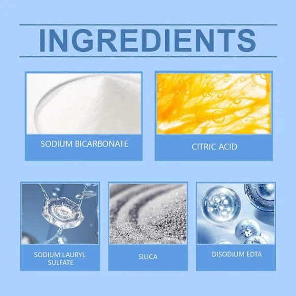 Vårt tet rengöringspulver innehåller natriumbikarbonat och citronsyra. Det kan snabbt ta bort smuts, hålla rent länge och bidra till att förbättra tet-miljön. Förbättra den övergripande hygiennivån i badrummet. Dess användningsmetod är mycket enkel: 1. Häll varmt vatten i tet och tillsätt en lämplig mängd tvättmedel. Låt det stå i 2 timmar. 3. Borsta försiktigt tet med en borste, och smutsen kan enkelt avlägsnas, vilket gör att det ser så gott som nytt ut. Formulan är säker, djuprengörande, ofarlig och säker, lämnar inte lätt rester och är inte lätt att skada händerna. Vetenskaplig avkalkning, ingen skada på tandemaljen. Fläckar kan enkelt avlägsnas genom att helt enkelt skölja, enkelt och hygieniskt.