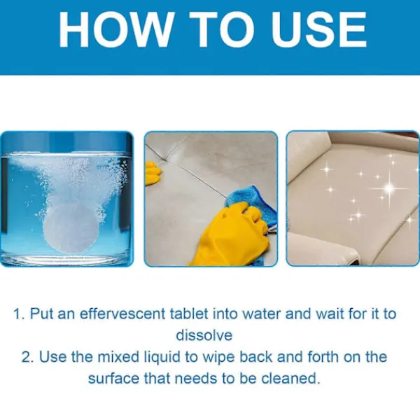 Våra textilrengöringstabletter innehåller citronextrakt, dinatrium-EDTA och natriumbikarbonat. De kan tränga djupt in i tygfibrerna för att noggrant avlägsna smuts, damm etc. På soffans yta för att återställa soffans renhet, kan hålla soffans tyg mjukt och smidigt, förhindra torr sprickbildning och blekning och förlänga soffans livslängd. Användningen är mycket enkel: lägg brustabletten i vatten, vänta tills den löses upp och torka fram och tillbaka med den blandade vätskan på ytan som behöver rengöras. Användningen av skonsamma och säkra ingredienser kommer inte att skada soffans tyg.
