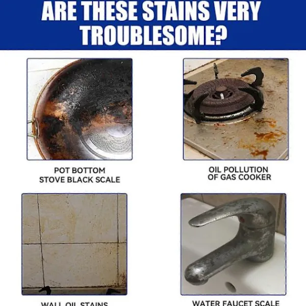 Vår ugnsrengöring för köksredskap innehåller tensider, penetreringsmedel och bas. Den kan snabbt ta bort envisa fläckar, oxidationslager och rostfläckar på olika ytor av rostfritt stål och förlänga livslängden på köksredskap av metall. Den är mycket enkel att använda: fukta bara svampen och applicera sedan rätt mängd rengöringsmedel i en cirkulär rörelse för att rengöra normalt. Lämplig för rengöring av ugnar, kastruller, köksredskap och spisar, dörr- och fönsterkarmar, bilar, keramisk sanitetsporslin, glas etc. Lätt att använda, bara torka och skölj, du kan få en spegelliknande lyster på köksredskapen.