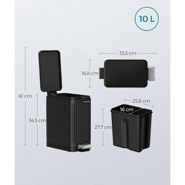 10L Kapacitet: Rymlig nog att hantera dagliga avfallshanteringsbehov.
