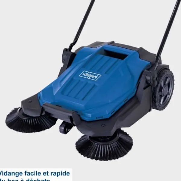 Sopmaskinen S800 har en sopbredd på 650 mm för effektiv rengöring på upp till 2600 m². Den är utrustad med ett 3-borst sopsystem med långvariga borst och en stor 20L sopbricka av slagtålig plast. Dess vikbara styre och enkla manövrering gör den lätt att använda.