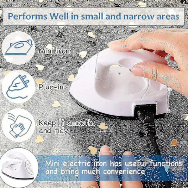 Funktioner: Det lilla strykjärnet är lämpligt i storlek, funktionellt och praktiskt. Det ger mycket bekvämlighet till sömnadsprojekt och strykning av vinylmönstrade kläder. Den fungerar bra på små områden och är lämplig för små projekt.