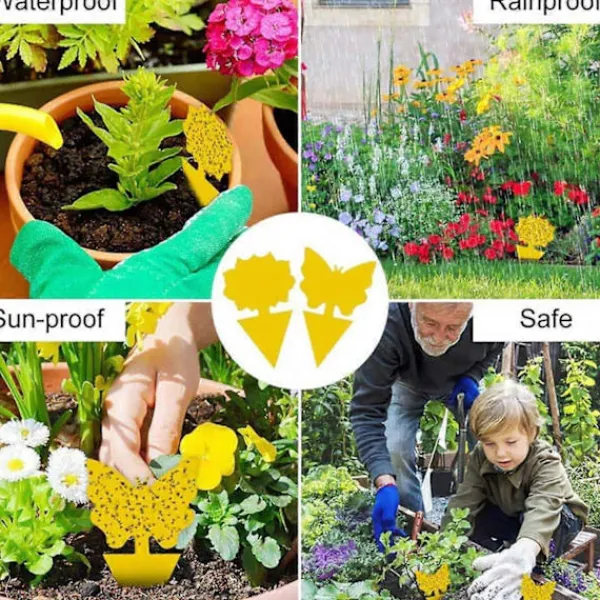 Dessa är helt giftfria och har ett lim som gör att flugor, myggor, myggor, myggor och andra flygande insekter fastnar. Den passar bra i hemmet och du kan enkelt gömma dem i blomman om så önskas. Inga bekämpningsmedel utan bara rent lim.
