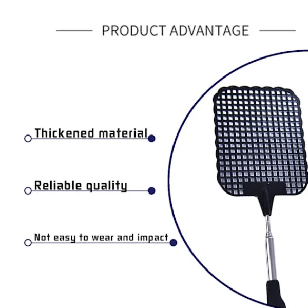 Flugsmällaren är tillverkad av giftfri och luktfri plast och rostfritt stålhandtag. Robust och hållbar, flexibel och bekväm, den kan användas enligt den faktiska situationen.