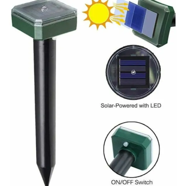- [Solcellsdriven Mullvadsskrämma] – Drivs av en solcell, inga extra batterier krävs. IP65 vattentät och korrosionsbeständig. Skrämman samlar energi från solen under dagen, den laddas automatiskt av solpanelen så att den kan fortsätta arbeta på natten. [Säker Ultraljud] – Djurskrämman stöter bort djurintrång med ultraljud utan att skada dem. Skräm bort katter eller andra djur som hundar, rävar, mårdar, tvättbjörnar, råttor, möss, grävlingar, skunkar, vildsvin, fladdermöss, fåglar, duvor, gnagare, etc. Idealisk för trädgård, gård, växthus. [Stor Effektiv Arbetsyta] – Enheten fungerar i ett cirkulärt mönster, cirka 15 m radie och täcker upp till 700 kvadratmeter. För bästa resultat rekommenderar vi att du installerar 2 enheter var 30 meter för markytor som frekventeras av gnagare. [Alla Väder] – Den unika tätningen och designen gör att den kan installeras var som helst. Men var försiktig: denna produkt bör inte sänkas ner i regnvatten. Idealisk för trädgårdar, terrasser, garage, terrasser, gårdar, vindar, etc.
