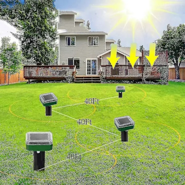 BRED EFFEKTIV RÄCKVIDD – Varje enhet täcker 557 kvadratmeter. Vi rekommenderar att du placerar avvisarna högst 25 meter från varandra. I sandig eller stenig jord, minska till 10 meter.