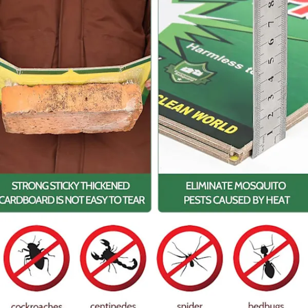 Skadedjursfällor med Klistermatta Tillverkad av ett speciellt lim för stark vidhäftning och jämn fördelning, den 31,5 cm x 12,4 tum öppna skadedjursfällan med klistermatta har en bred fångstyta för enklare fångst av spindlar/flugor/insekter/stinkbaggar och andra skadedjur. Fleranvändbara Skadedjursfällor med Klistermatta Skadedjursfällor med klistermatta har tjocknat och förstyvat kartong för att förhindra att de dras runt. Skadedjursfällor med klistermatta kan vikas till olika former för att passa olika miljöer och är särskilt lämpliga att placera på trånga utrymmen. Lätt att installera, lätt att rengöra Placera helt enkelt lite bete och placera klistermattor i områden där skadedjur ofta hittas. När du har kontrollerat skadedjuren, kasta dem helt enkelt i soptunnan. Säkrare och mer miljövänliga Skadedjursfällor med klistermatta av hög kvalitet är säkra för din familj och dina husdjur, fria från kemikalier och mycket miljövänliga, giftfria och ofarliga. Limkompositionen är giftfri tryckkänsligt lim och kan rengöras med tvål eller lösningsmedel om det av misstag fastnar på dina händer. Skadedjursfällor med klistermatta för flera scenarier Kan användas inomhus eller i trädgården. Du kan placera på matta, parkettgolv, kakel, Idealisk för kök, lager, kontor, restauranger och barer. En grön skadedjursfälla med klistermatta för hus. 5 st Fleranvändbara Skadedjursfällor med Klistermatta Storlek 31,5×21,3×0,3cm 12,4×8,4×0,1 tum