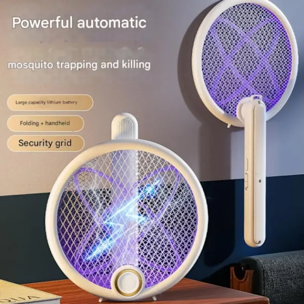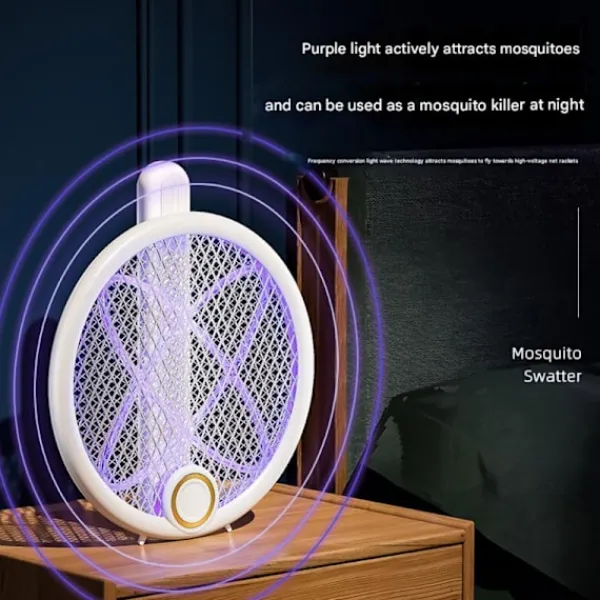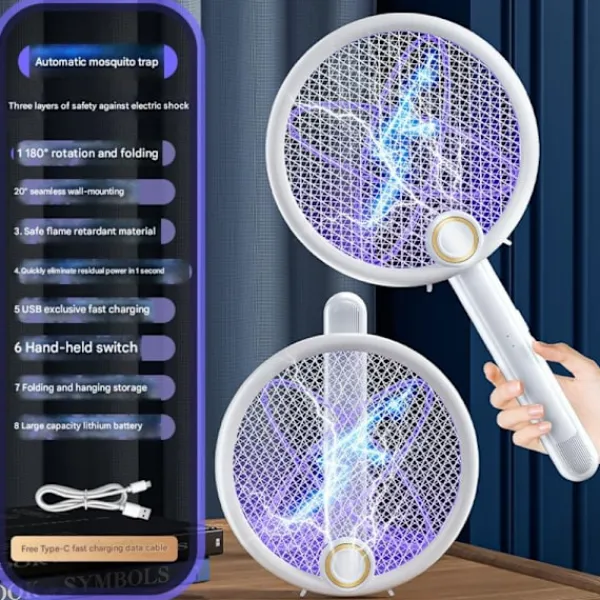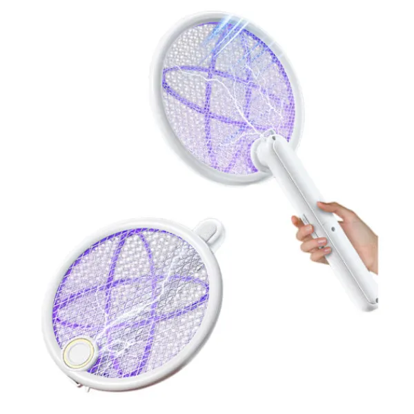 【Två-i-ett hopfällbar elektrisk myggsmälla】Den kan användas som en handhållen elektrisk myggsmälla när den är upprätt, och som en myggdödande lampa när handtaget är hopfällt. Den elektriska myggsmällan är utrustad med en snodd och kan även användas hängande. Utrustad med en bas, den är stabilare och det finns ingen anledning att oroa sig för att den ska välta.