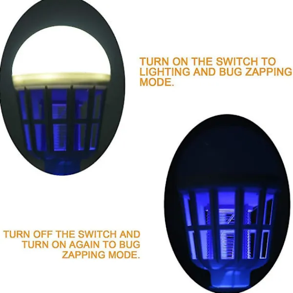 2 i 1 glödlampa — LED-lampan och insektsdödaren är designade i en glödlampa. 2 lägen att välja mellan: endast insektsdödare, insektsdödare + LED-ljus.^Giftfri och ofarlig — Den elektroniska myggfällan lockar och dödar irriterande insekter genom ljusvågor. Giftfri och kemikaliefri, hälsosammare och säkrare än insektsmedelsspray.^Enkel installation — Myggdödaren passar i E26/E27110V glödlampsuttag. Inga extra kablar eller kontakter behövs. Installera den bara som en vanlig glödlampa.^Miljövänlig — Energisparande och miljövänlig; 15W LED-lampa tål 50 000 timmars livslängd. Du behöver inte köpa förorenande kemisk spray.^Brett användningsområde — Perfekt för både inomhus- och utomhusbruk. Perfekt för att döda alla typer av hatfulla insekter i veranda, trädgård, sovrum, bakgård, restaurang, hotell och så vidare.