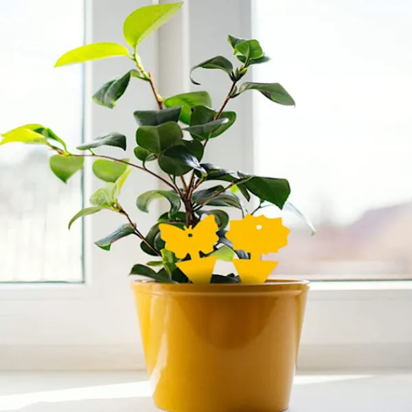 Dra bara av skyddsfilmen och stoppa ner i jorden. Flygande insekter ska fastna.