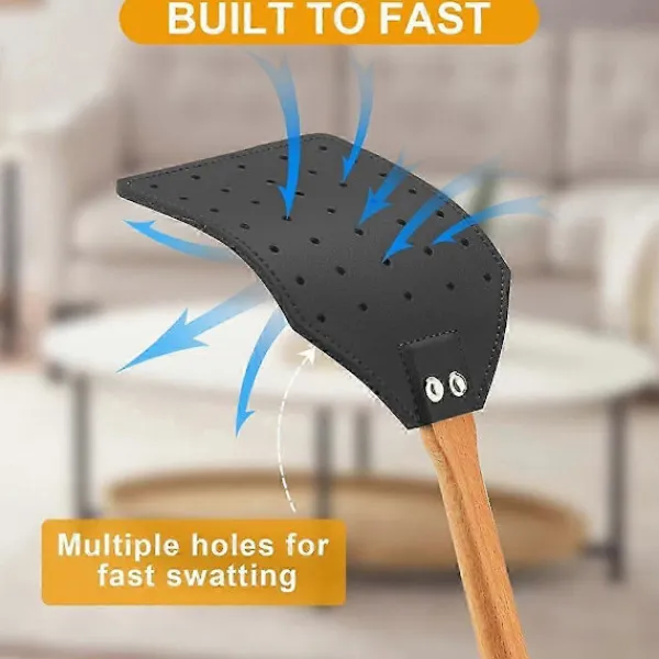 LÄTT ATT SMÄLLA FLUGOR: Vår flugsmälla i läder för inomhusbruk kan enkelt smälla flugor. Den har inte bara en smällyta på 10×12,5 cm, utan den 50 cm långa flugsmällan gör att du kan smälla flugor på högre positioner. De små hålen på flugsmällan minskar motståndet och ökar hastigheten på att smälla flugor, ingen fluga kan undkomma vår flugsmälla.
