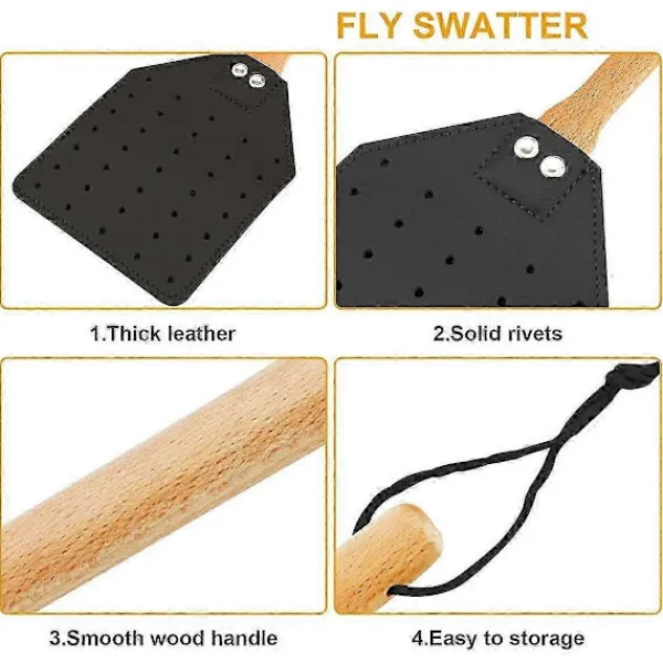 ROBUST OCH SPRICKFRI: Till skillnad från andra flugsmällor i plast eller tråd som tenderar att spricka eller rosta. Vår högkvalitativa flugsmälla är tillverkad av läder och trä och spricker eller rostar inte! Spara dina pengar! Och säg adjö till flugsmällor av dålig kvalitet som bara håller några veckor. Våra flugsmällor i läder kommer att hålla i flera år!