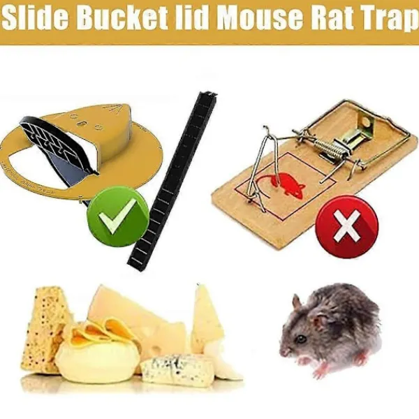 Högkvalitativ råttfälla vattenrutschkana hinklock råttfälla Flip N Slide hinkfångare avtagbar [LÄTT ATT ANVÄNDA] Snäpp bara fast den på en standardstorlek 5-gallon tunna råttfälla och spräng de fångade mössen och råttorna. Inga fler humana råttfällor för att hantera smutsiga möss med lim eller råttfälla. Nu är det bara att släppa/kasta musen utan att komma nära röran. Råttfälla BucketFlip och glid råttfälla kan automatiskt återställas och hålla mer än 30 möss och 10+ medelstora möss. Till skillnad från traditionella råttfällor som bara fångar 1 eller 2, behöver du inte städa upp någon röra efteråt. [Kan användas på flera platser] Denna råttfällahink kan användas som en råttfälla för utomhusträdgård eller som en råttfälla för inomhusarbete. [SÄKER OCH VÄNLIG] Sluta köpa traditionella råttfällor eftersom de kan skada dina husdjur och ännu allvarligare dina barn. Våra råttfällahinkar är 100 % säkra och giftfria, så använd flip and slide råttfälla med tillförsikt. [MILJÖVÄNLIG OCH DÖDLIG] Vår Bucket Mousetrap är inte en engångsprodukt. Du kan återanvända den utan att slänga den. Hinklidsfällor är utformade för att användas som en fångst- och släppmetod, men du kan välja att fylla hinken med vatten för att göra fällhinken dödlig. Paketet innehåller: 1 råttfällaskydd, 2 stegar
