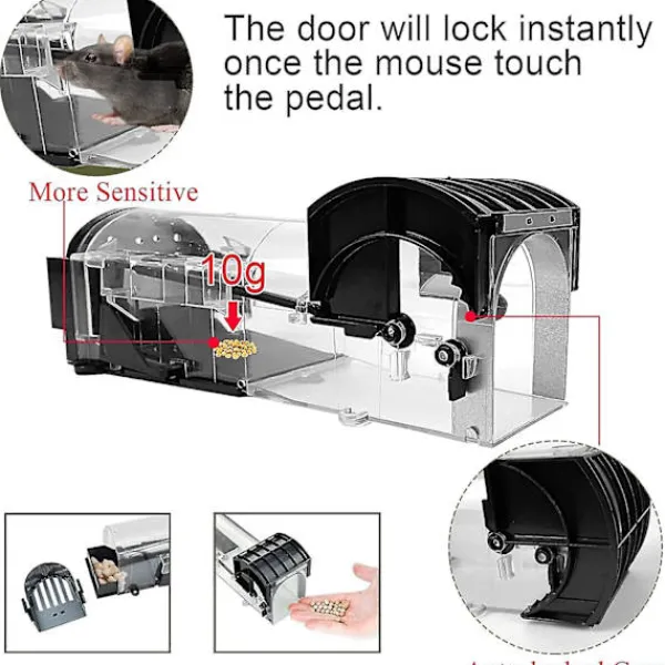 Känslig och effektiv: När musen lockas av betet och går in i den, utlöses fällamekanismen, dörren låses omedelbart och musen fångas.