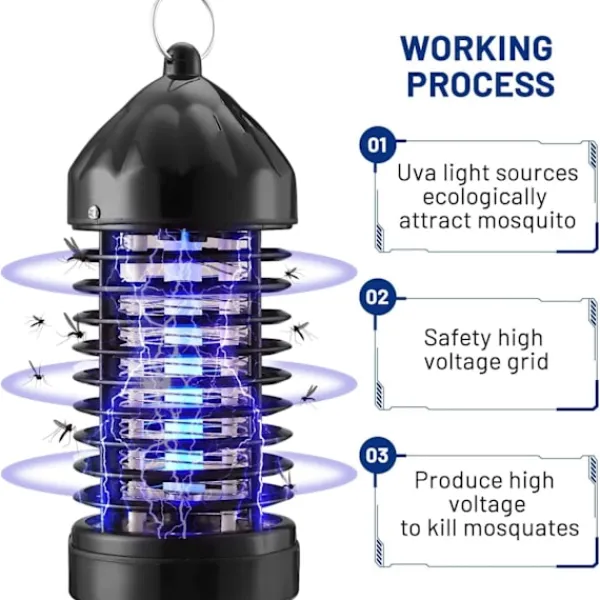 4000V Effektiv Högspännings Myggdödare Myggdödaren avger 365MM ultravioletta strålar, vilket effektivt lockar myggor genom att simulera samma temperatur som människor. Använd sedan 4000V högspänningsström för att döda myggor.
