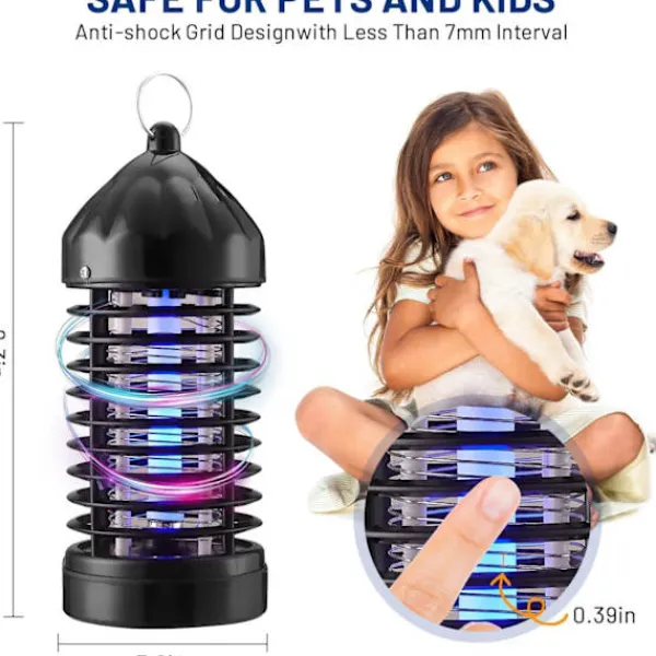 Säker och Miljövänlig Myggdödare Myggdödaren är designad med fysisk metod och tyst drift, med ett intervall på mindre än 8 mm, vilket förhindrar att barn och husdjur rör vid nätet. Kemikaliefri, luktfri, säker för spädbarn, husdjur och miljön.