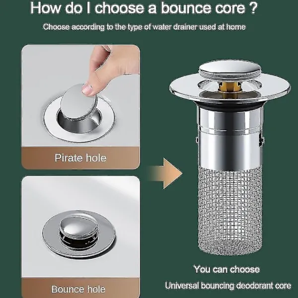 Hårfångare för Badrum – Uppfällbart Avloppsfilter med Avtagbar Hårfångare i Rostfritt Stål för Amerikansk Badrumspropp Ersättning Badrums AvloppssilFunktioner:1. Högkvalitativt material: Vår Hårfångare för Badrum är tillverkad av slitstarkt rostfritt stål, vilket säkerställer långvarig användning. Det avtagbara filtret fångar effektivt upp hår och stopp i ditt badrumsavlopp.2. Praktisk design: Det Uppfällbara Avloppsfiltret möjliggör enkel installation och borttagning, vilket gör det till en problemfri lösning för Amerikansk Badrumspropp Ersättning. Dess innovativa design säkerställer effektivt vattenflöde samtidigt som den fångar upp hår och skräp.3. Effektiv hårfångare: Säg adjö till frekventa VVS-problem med vår Hårfångare för Badrum. Filtret i rostfritt stål fångar effektivt upp hår och förhindrar att det täpper till avloppet, vilket håller ditt badrum rent och hygieniskt.4. Mångsidig användning: Vår produkt fungerar inte bara som en Hårfångare för Badrum utan också som en Badrums Avloppssil. Den ger en pålitlig lösning för att hålla ditt avlopp fritt från hår och andra små föremål, vilket säkerställer smidig dränering varje gång.5. Kundnöjdhet garanteras: Vår Hårfångare för Badrum stöds av en nöjdhetsgaranti, vilket säkerställer din fullständiga sinnesfrid. Upplev bekvämligheten och effektiviteten den erbjuder för att upprätthålla ett rent och funktionellt badrum. Rengör håret som samlats i sugkoppen med ett klick! Badrumsavloppsfilter, avtagbart filter i rostfritt stål, lätt att byta ut, säg adjö till igensättningMaterial: legeringFärg: som bilden visar, (På grund av skillnaden mellan olika bildskärmar kan bilden ha en liten färgskillnad. se till att du inte har något emot det innan du beställer, Tack!)Paketvikt: 62gPaketstorlek: 9×6,5x6cm,(Vänligen tillåt 1-3mm fel på grund av manuell mätning. se till att du inte har något emot det innan du beställer.)
