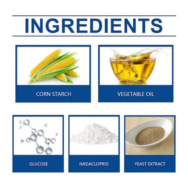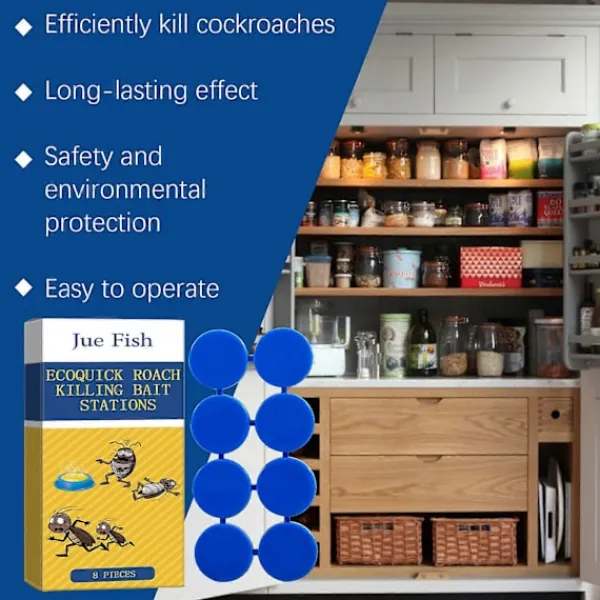 Våra kackerlacksbetesstationer innehåller majsstärkelse, grönsaker och glukos. Det kan effektivt fånga och fullständigt förstöra kackerlackor, unik formula, förbättra infångningseffekten, kackerlackor har ingenstans att fly. Ingredienserna är säkra, giftfria och ofarliga, vänliga för människor och husdjur. Användningen är enkel: det varar upp till 90 dagar. Lämplig för en mängd olika platser, du kan limma fast limmet bakom betet och sedan placera betet i ett område där kackerlackor ofta syns. Kraftfulla infångningsingredienser säkerställer att kackerlackor lockas till och förstörs; Det förblir effektivt under en lång tidsperiod och minskar risken för att kackerlackor förökar sig.