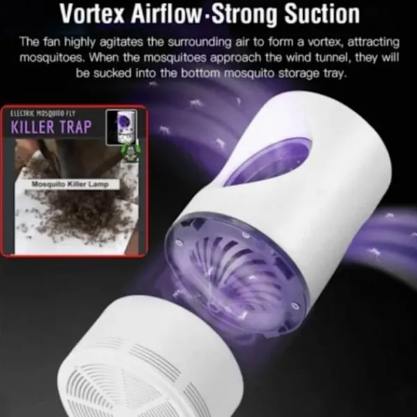 Lätt att rengöra: Myggfångaren är utrustad med en avtagbar uppsamlingsbehållare på botten för enkel rengöring och borttagning av döda insekter.