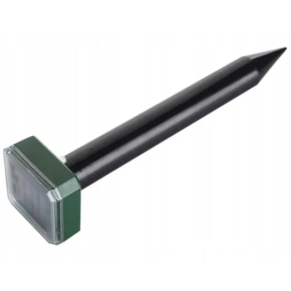 Solcellsdriven ormskrämma / sorkavvisare för trädgården, öka säkerheten i din trädgård 2023! Drivs av solen så inga batterier behövs, tryck ned änden i marken som varje minut skickar ut en vibrerande frekvens på 400-1000 HZ som ormar, huggormar, sorkar och mullvadar inte gillar och ger sig längre bort. Det är inte skadligt för människor eller dina djur. 1 stycken sorkavvisare räcker för upp till 1000 m2 men det beror mycket på vilket material det är i marken, hur fuktigt det är etc. Efter fem dagars användning bör resultatet kunna ses (Eller inte ses, då skadedjuren är borta) Notera att ett visst surr kan eventuellt höras från den om man är i närheten av den, sorkavvisaren kan därför med fördel placeras en bit bort där man inte tillbringar så mycket tid.