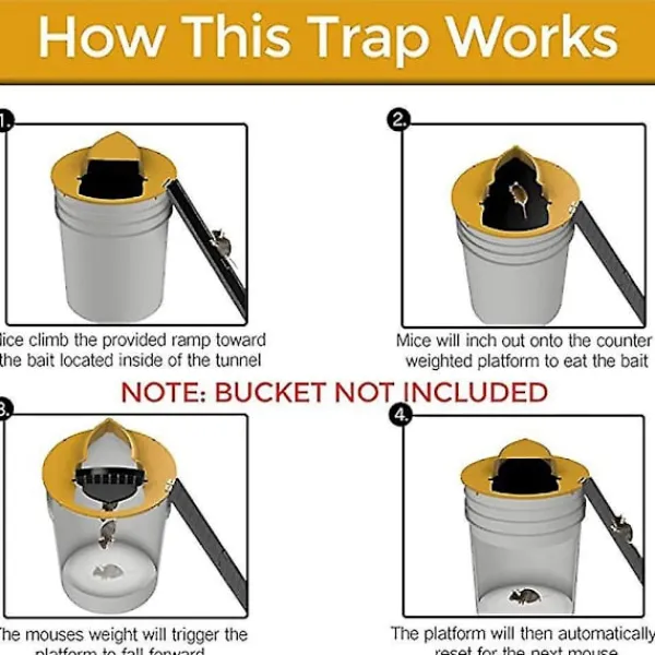 Features:Clean, hygienic and safe-there is no need to use glue to capture by hand, which separates harmful substances and is safer and more hygienic.Strong practicability-our mousetrap can catch small and medium-sized mice, reducing a lot of pests to a certain extent.Good quality, solid and durable material-made of high-quality pp material.Specification:material: plasticSize: 30x30x8cmThe package includes:1x flip cover N sliding bucket cover mousetrap(Without barrel)