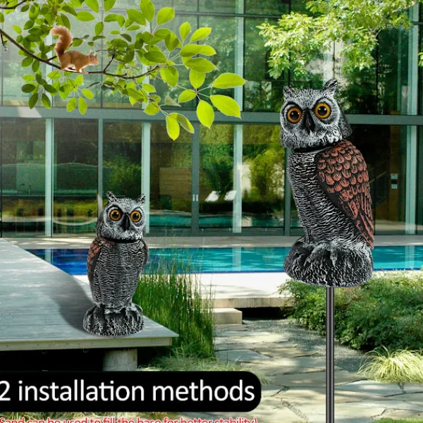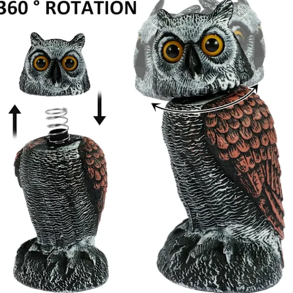 Uggla Skräm fågel kontroll enheter med 360° svängbart huvud vattentätt falsk uggla