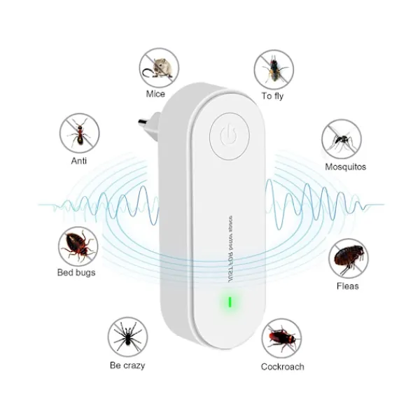 Denna ultraljudsrepeller är utformad för att sprida varierande högfrekventa signaler som stör insekter och mindre gnagare i inomhusmiljöer. Signalerna är inte hörbara för människor och kan användas i bostäder, källare, garage eller förråd där smådjur ofta upplevs störande. Enheten ansluts direkt i vägguttaget och har en kompakt design som gör den enkel att placera utan behov av installation. Den inbyggda indikatorlampan visar när enheten är aktiv och sprider signalerna i bakgrunden.