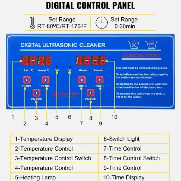 Användarvänliga detaljer: Vår ultraljudstvätt är utrustad med flera värmeavledande hål på båda sidor och på baksidan, designade för överhettningsskydd. En reservsäkring tillhandahålls vid överström.