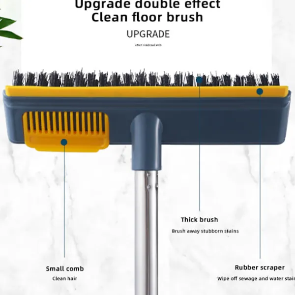 * 2 i 1 design: Borste + skrapa 2 i 1 design golvskurborste med PP borst + gummiskrapa; Borst tar effektivt bort fläckar på hårt golv. Stark rengöringsförmåga, enkelt ta bort fläcken, smutsigt vatten och damm; Förbättra effektiviteten när du gör hushållsarbete.