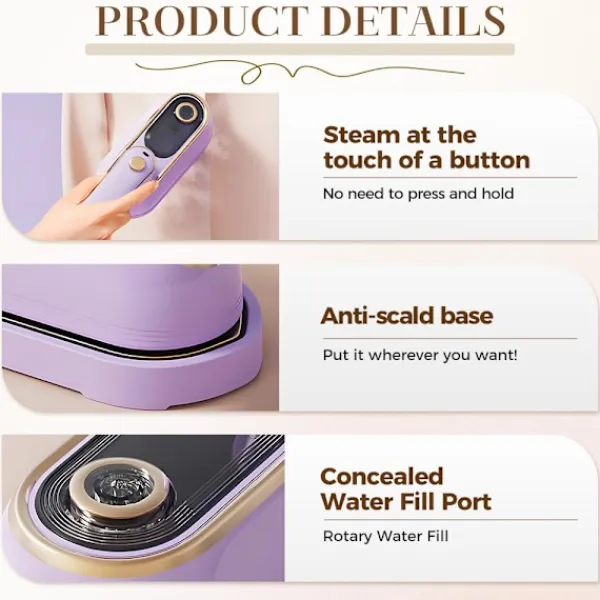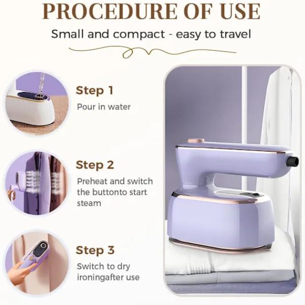 Designad speciellt för resor och små utrymmen, detta lätta verktyg levererar kraftfull prestanda i ett bärbart format. Den ergonomiska designen ger bekväm kontroll oavsett om du fräschar upp en enda skjorta eller flera plagg, vilket gör den till en idealisk följeslagare för att upprätthålla ett professionellt utseende när du är hemifrån.