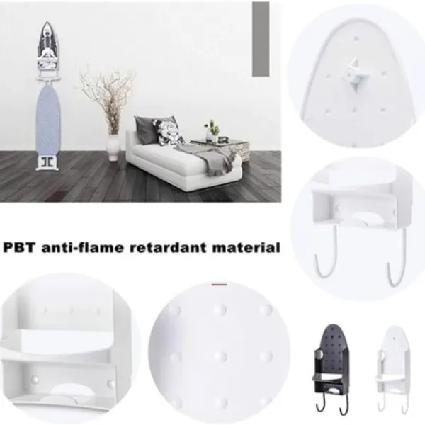 【Högkvalitativt material】 Strykbrädestället är tillverkat av slitstarkt PBT-flamskyddsmedel, BPA-fritt och värmebeständigt upp till 150 grader. Den kan användas för att hänga strykbrädor eller olika småsaker. Strykbrädestället är robust, inte lätt att bryta och bleknar inte. 【Utrymmesbesparande】 Maximera ditt utrymme och eliminera tvättstugans röran med denna