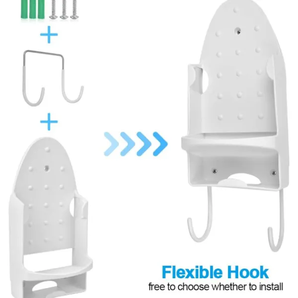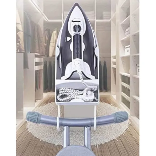 SPARA UTRYMME – Denna strykbrädeshållare håller ditt strykjärn och din strykbräda snyggt förvarade med en sladdförvaringslucka på undersidan som fälls in i förvaringsluckan för att spara utrymme och bekvämlighet. Håll rent.