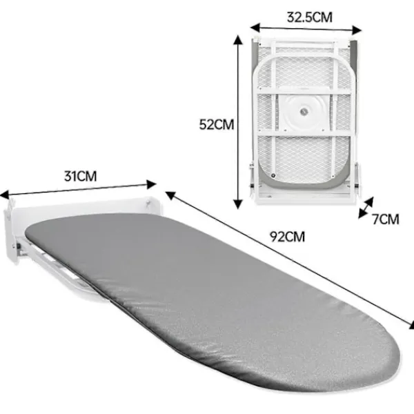 Utrymmesbesparande: Denna väggmonterade strykbräda är designad för att fällas ihop och rotera, vilket gör den perfekt för kompakta bostadsutrymmen som studentrum och lägenheter. Dess hopfällbara funktion möjliggör enkel förvaring utan att ta upp mycket plats.Snygg och robust: Med en elegant design som kompletterar moderna interiörer är denna strykbräda både fashionabel och stabil. Konstruktionen i kolstål säkerställer hållbarhet och långvarig användning.Stor strykyta: Med en generös panelstorlek på 92cmx31cm/36.22inchx12.20inch utfälld, ger denna strykbräda gott om utrymme för effektiv strykning, medan den kompakta förvaringsstorleken på 52cmx7cm/20.47inchx2.76inch gör den lätt att stuva undan när den inte används.Bekväm väggmontering: Denna strykbräda är lätt att montera på väggen och erbjuder en praktisk lösning för dem som behöver snabb tillgång till en strykyta utan krångel med att sätta upp en traditionell bräda.Rotationsbar: Den uppgraderade 180-graders rotationsfunktionen gör att du kan justera brädan smidigt utan några fasta punkter, vilket ger flexibilitet och enkelhet under dina strykuppgifter.