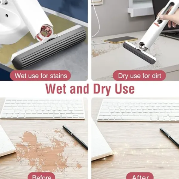 Bred användning: Den lata mini-moppen är en rengöringsassistent för små utrymmen, som kan användas i trånga hörn och gör djuprengöring enklare, vilket minskar besväret med att torka smutsiga händer med en trasa. Bärbar självpressande mini-mopp passar även för alla typer av skrivbord, glas, bänkskivor, väggar, golv, kök, vardagsrum, badrum och till och med din bil.