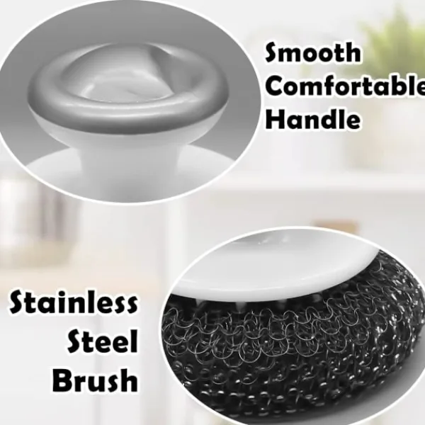 【Premiummaterial】Rostfri stålsvamp är gjord av ståltråd och plast, trådnätet är tätt lindat, robust och inte lätt att deformera och lossna. Rostfri stålsvamp borste tar bort envisa fläckar, är lätt att rengöra och håller länge.