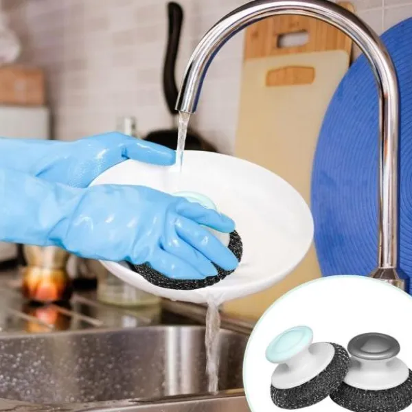 【Ergonomisk design】Handtagen på grytsvamparna är ergonomiskt utformade med en konvex topp, vilket gör dem lätta att greppa, bekväma och praktiska att hålla i. Stålullssvampar med handtag håller händerna fria från fläckar och rengöringsvätskor och förhindrar att handflatorna doppas i smutsigt vatten.