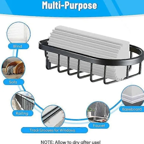 Mångsidig, svamprengöringsborsten är lämplig för rengöring av persienner, ventiler, räcken, sänggavlar, fönsterspår, kranar, golvlister och mer.