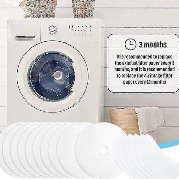 [Påminnelse]: det rekommenderas att byta ut avgasfilterpappret var 3:e månad, och det rekommenderas att byta ut insugsfilterpappret var 12:e månad; Rengör luddsilen före varje lastning, om luddkomponentfiltret inte är fast, kör inte torktumlaren.Färg: Vit