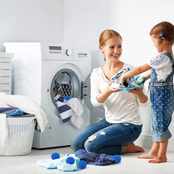 Multifunktion: Torkbollar används inte bara för att torka linne, utan även för att tvätta kläder. Dessa bollar tillåter luftcirkulation och minskar avsevärt mängden tvättmedel som används. Den gnuggar tyget för att generera värme och påskynda torkningen.