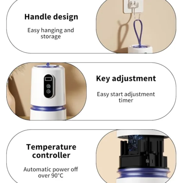 Smart enknappsmanövrering: Tryck bara på startknappen för att omedelbart gå in i intelligent torkläge. Den justerar automatiskt vindstyrka och tid, vilket eliminerar behovet av komplicerade inställningar och torkar kläder snabbt och enkelt.