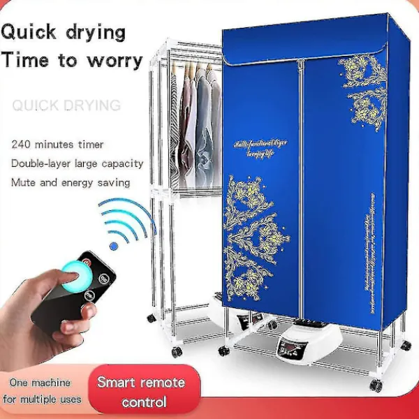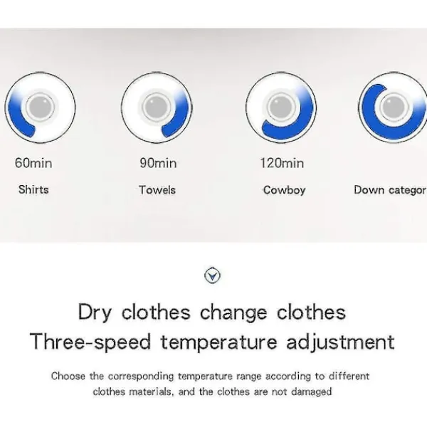 Fjärrkontroll och timer: Vår hopfällbara torktumlare är utrustad med en fjärrkontroll, och den maximala torktiden är 240 minuter. Du kan justera temperaturen och torktiden efter olika kläder och säsongsbehov. När den inställda tiden har gått ut stängs maskinen automatiskt av. Portabel, ekonomisk och hygienisk: Vår torktumlare är en liten maskin designad för regniga dagar. Den kan enkelt torka dina kläder utan att du behöver oroa dig för lukten som orsakas av ansamlingen av våta kläder. Om du har en torktumlare behöver du inte gå till tvättomaten för att torka dina kläder, vilket sparar tid och håller det rent. Den är mycket lämplig för hem, lägenhet och resor. Paketet innehåller: 1 torktumlare 1 manual 1 europeisk adapterkontakt 1 fjärrkontroll Storlek: 22,5x29x16,5cm Kan den tidsinställas: Ja Tidsinställning: Fyra lägen 60-240 minuter Effekt: 1500-1800W Spänning: 220V Torkläge: hög hastighet, låg hastighet, normal vind Produkter från butiken Fjärrkontroll och timer: Vår hopfällbara torktumlare är utrustad med en fjärrkontroll, och den maximala torktiden är 240 minuter. Du kan justera temperaturen och torktiden efter olika kläder och säsongsbehov. När den inställda tiden har gått ut stängs maskinen automatiskt av. Portabel, ekonomisk och hygienisk: Vår torktumlare är en liten maskin för regniga dagar. Den kan enkelt torka dina kläder utan att du behöver oroa dig för att högar med våta kläder producerar obehagliga lukter. Om du har en behöver du inte gå till tvättomaten för att torka dina kläder, vilket sparar tid och rengöring. Perfekt för hem, lägenhet, resor. Paketet innehåller: 1x Torktumlare 1x Manual 1x Europeisk adapterkontakt 1x Fjärrkontroll Storlek: 22,5x29x16,5cm Kan den tidsinställas: Ja Tidsinställningar: Fyra lägen 60-240 minuter Effekt: 1500-1800W Spänning: 220V Torkläge: hög hastighet, låg hastighet, normal vind Produkter från butiken